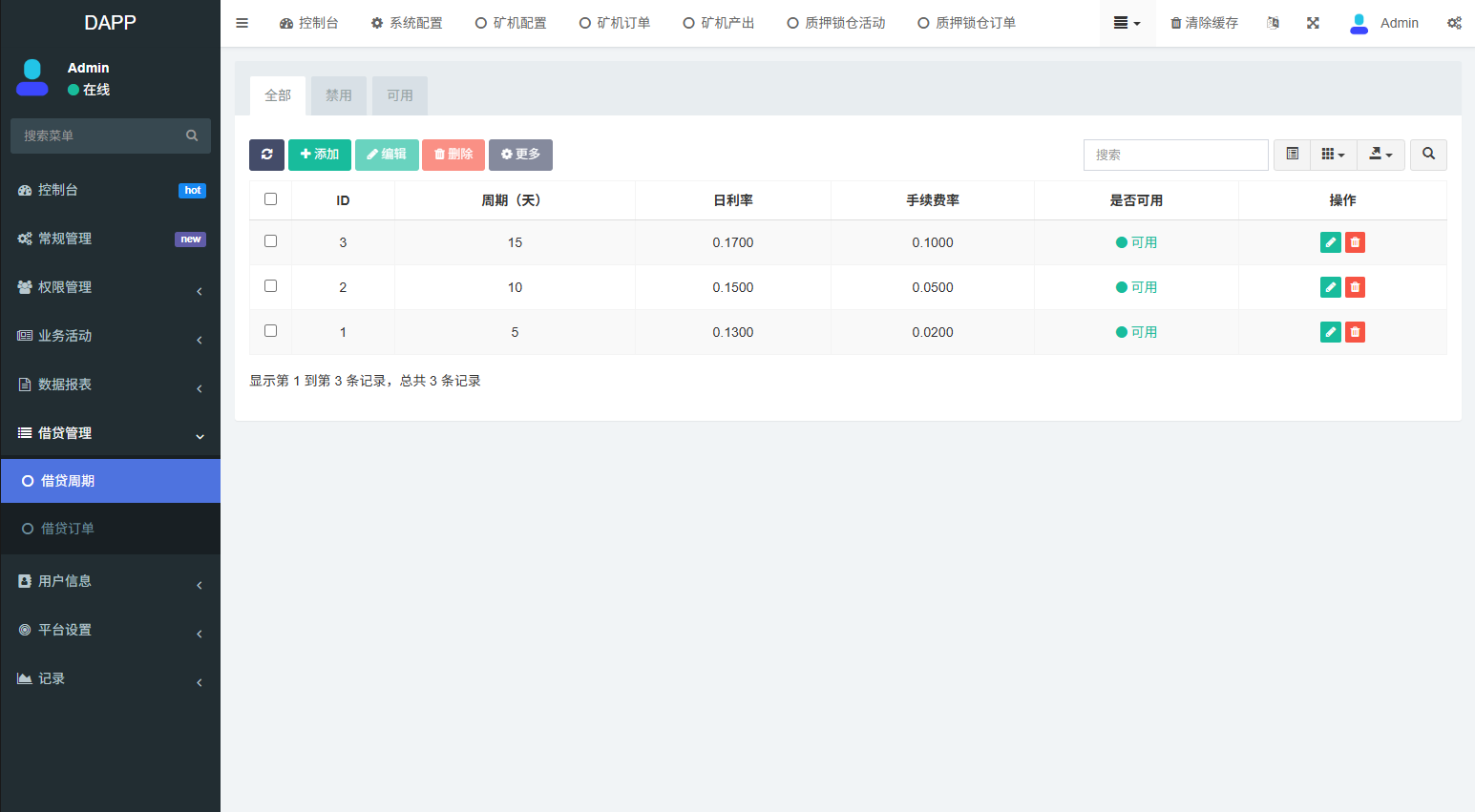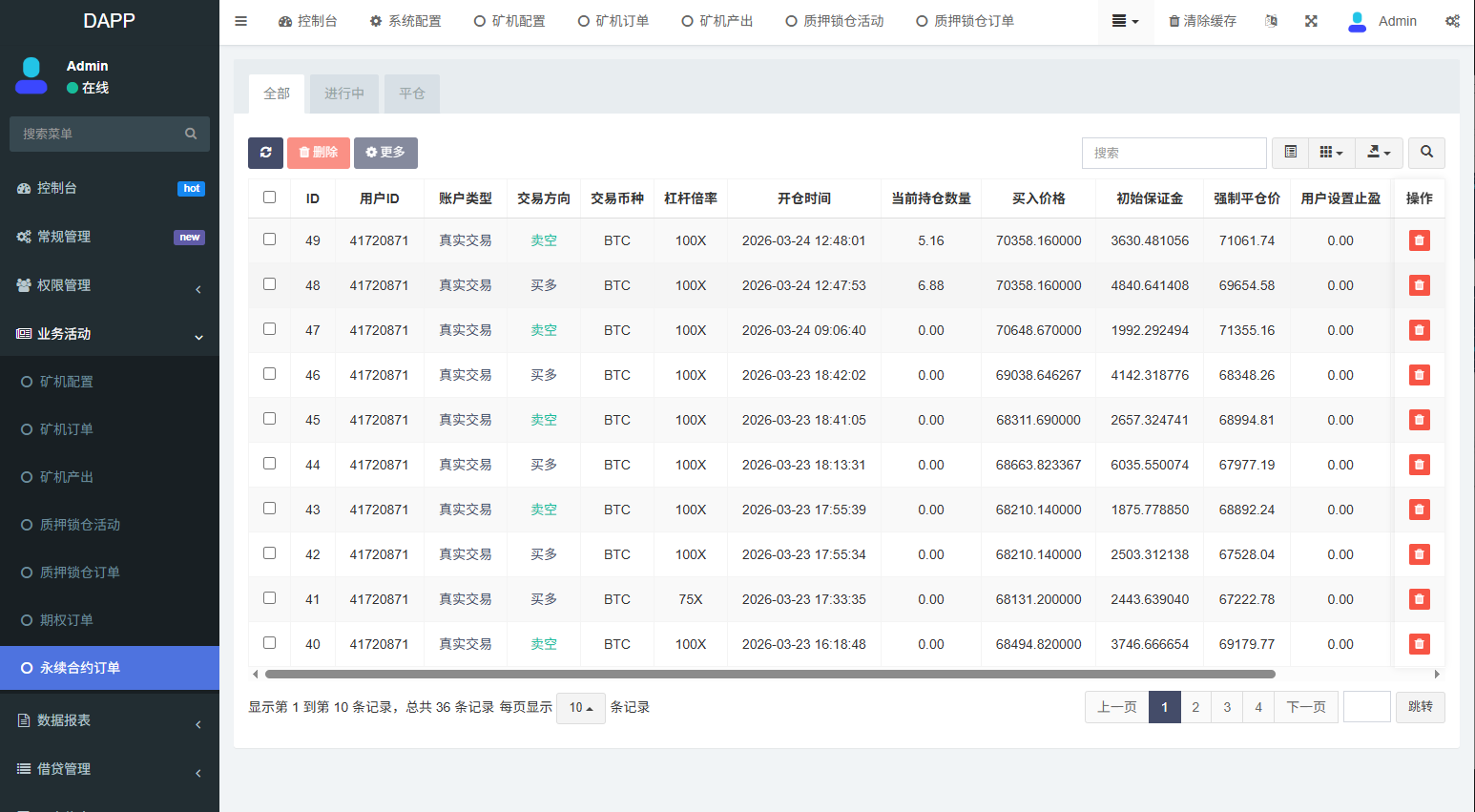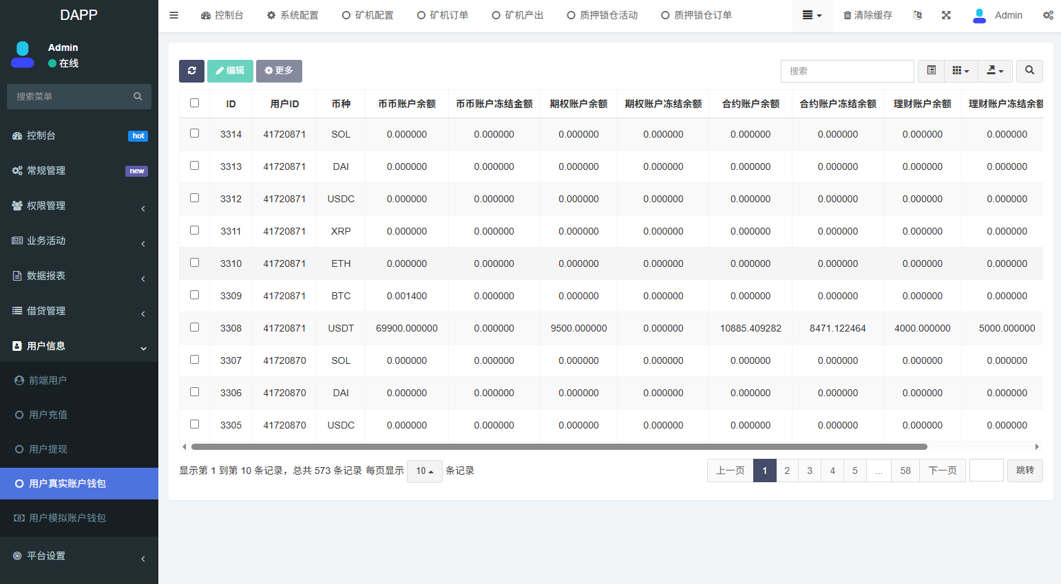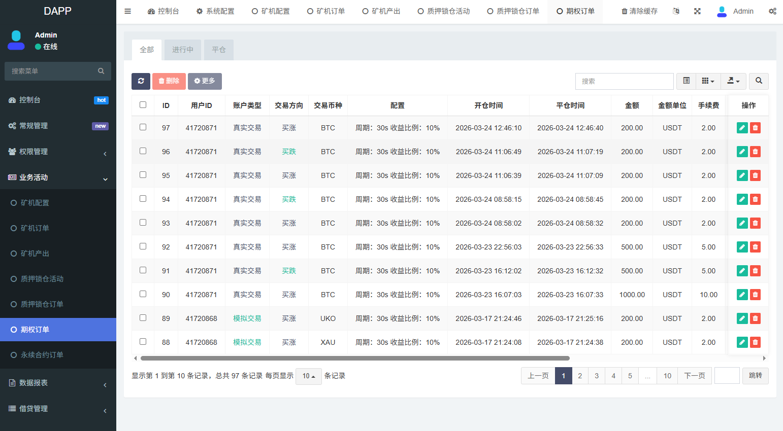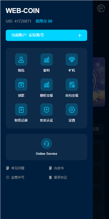 支持期权交易,合约交易,质押,信用分,贷款,实名认证等功能